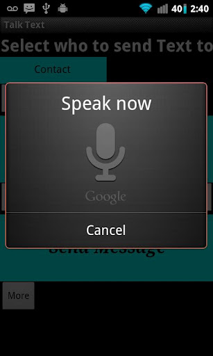 The Talk Text app allows you to easily access your entire contacts list with the click of a button.  You just speak what you want your text message to say and a text is sent to the recipient in 3 taps.  It works up to 5 times faster than typing.  Talk Text is a very convenient way to send SMS messages to any cell phone.